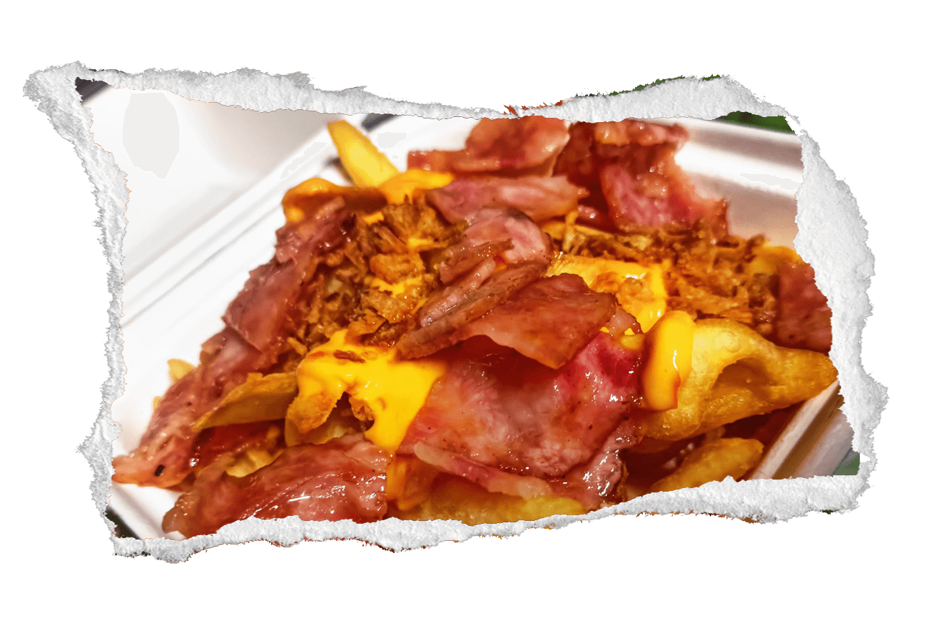 Bacon, salsa cheddar, cebolla frita