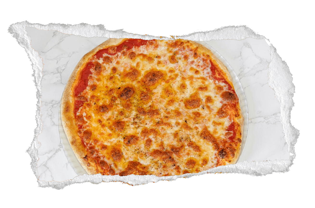 Tomate, mozzarella, jamón york, piña y orégano