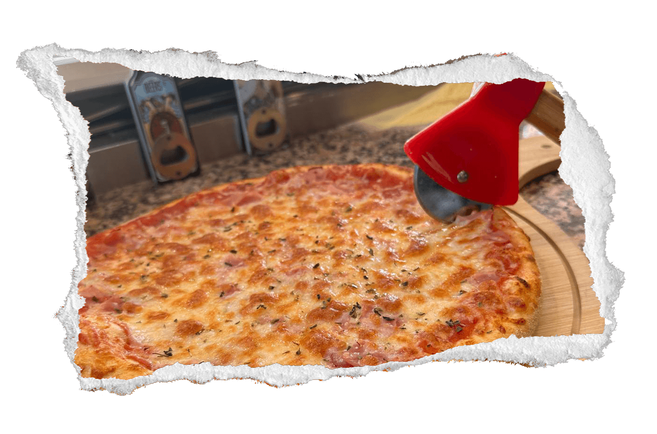 Tomate, mozzarella, jamón york, champiñones y orégano